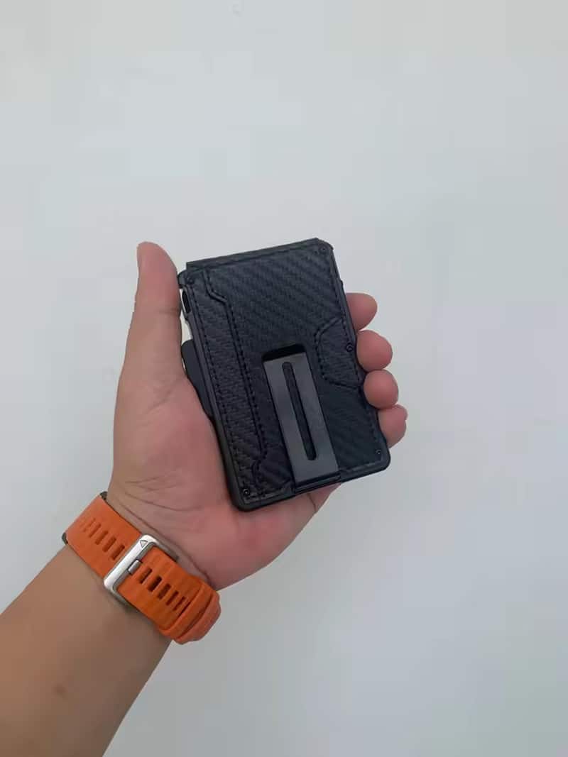 The integrated clip securely holds folded bills of various denominations. It provides firm tension without damaging currency, keeping cash organized and accessible.