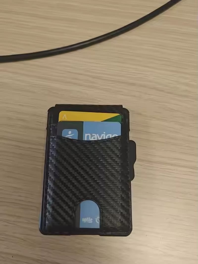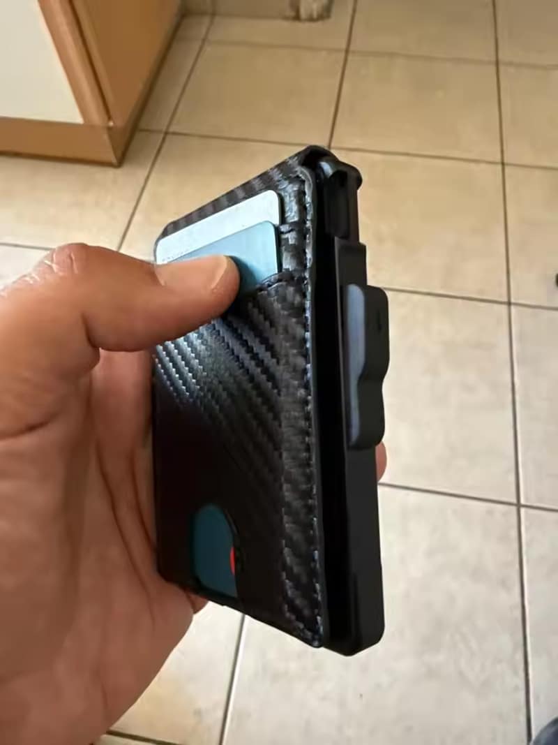 Simply press the designated area on the wallet's exterior, and the cards fan out for easy selection. The mechanism is smooth and requires minimal effort.