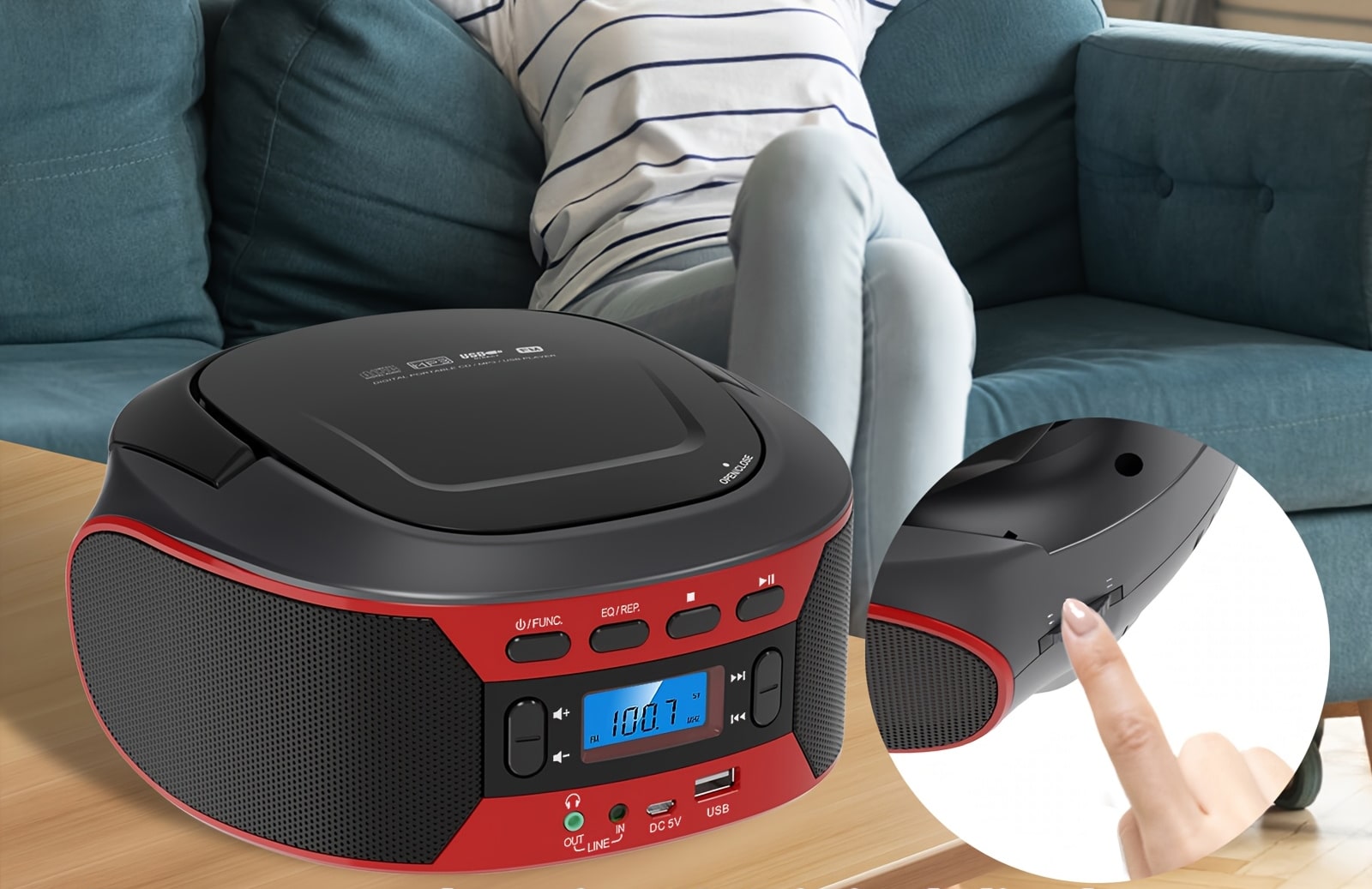 • CD, FM, USB Playback