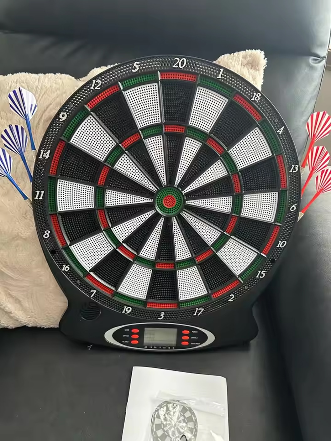 The included plastic-tip darts feature durable construction designed for extended use. They maintain consistent weight and balance through thousands of throws while protecting wall surfaces, though replacement darts are available for purchase.