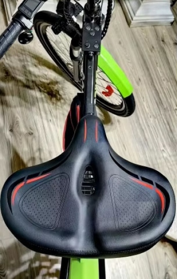 The 6cm extra-thick cushioning with pressure distribution zones eliminates numbness by evenly distributing weight, allowing comfortable rides for hours without pain or fatigue.