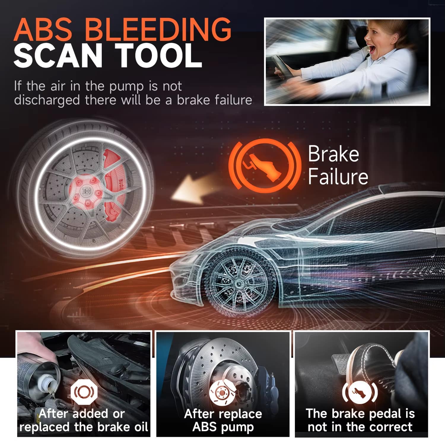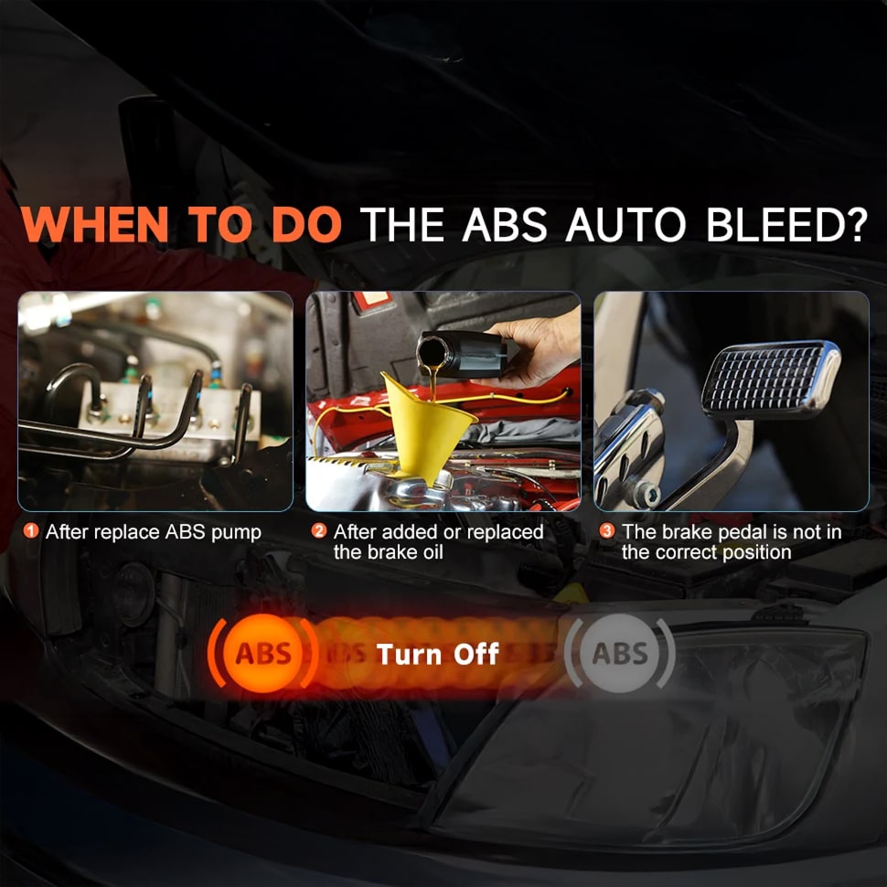 Yes, Diagscan's auto bleeding function cycles the ABS pump and valves automatically. You can bleed brakes solo without an assistant, ensuring proper air removal and firm pedal feel after brake component replacement or fluid changes.