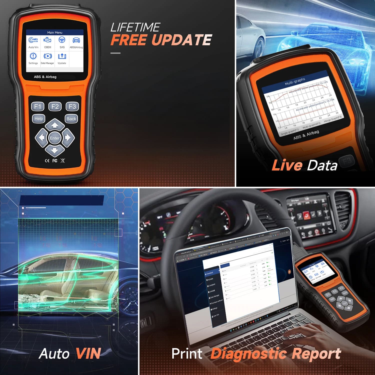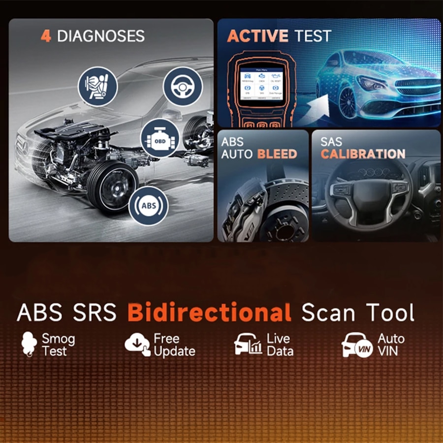 Standard readers only read codes. Diagscan sends commands to test components actively—operating ABS motors, cycling valves, testing actuators—verifying actual system operation beyond just identifying stored trouble codes for comprehensive diagnostics.