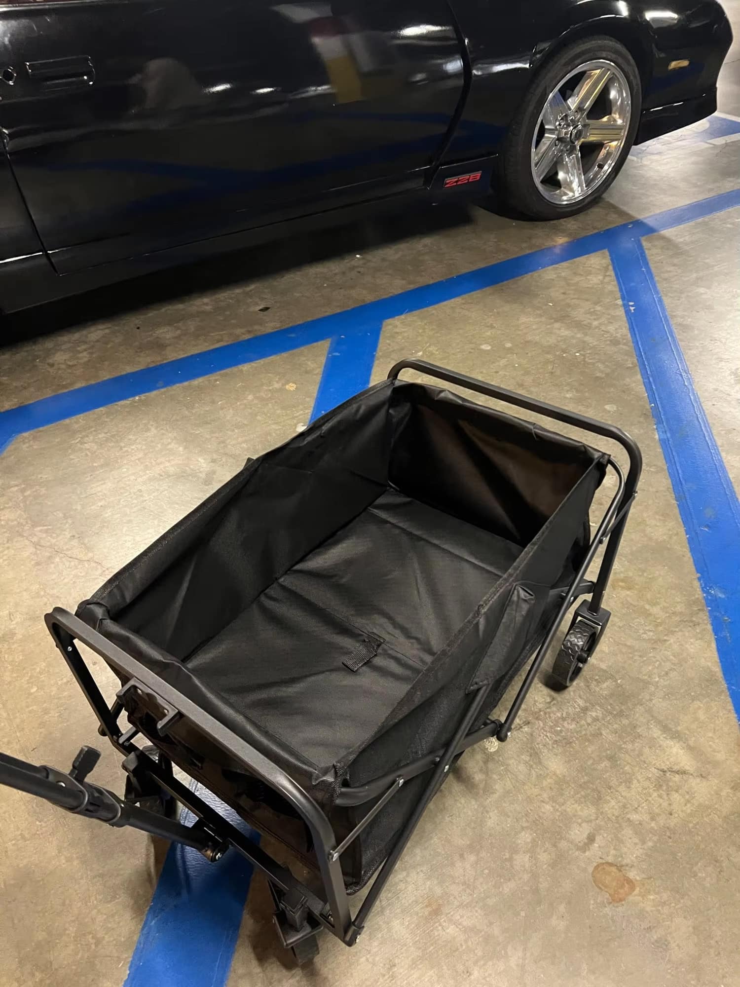 The Fotticart's compact folded dimensions (26.77" x 18.89" x 4.72") allow it to fit in most standard car trunks, SUVs, and even some larger sedan trunks with room to spare.