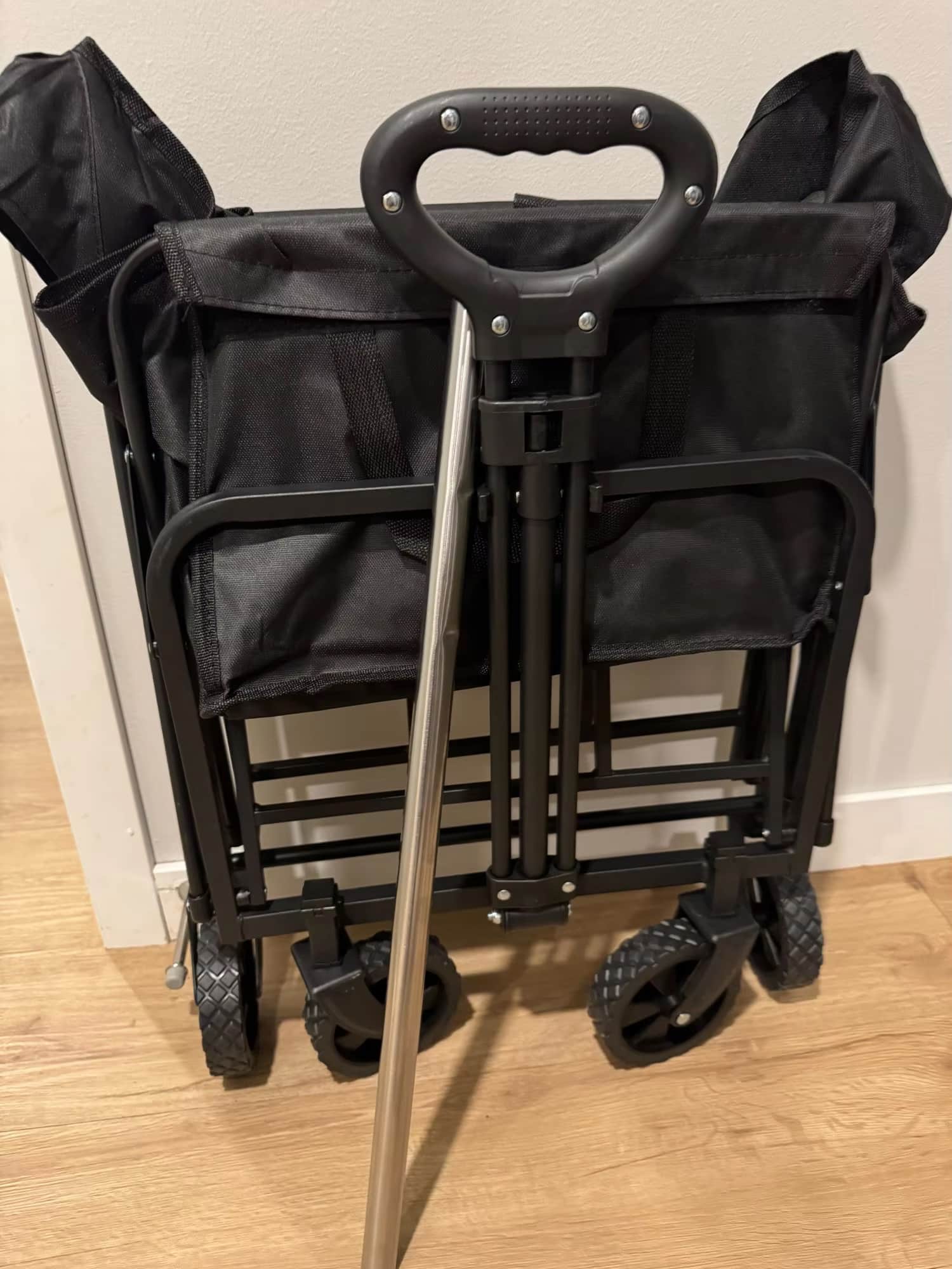 Yes, the wagon features an intuitive one-step folding mechanism that allows a single person to easily deploy or collapse it in seconds without requiring additional tools or assistance.
