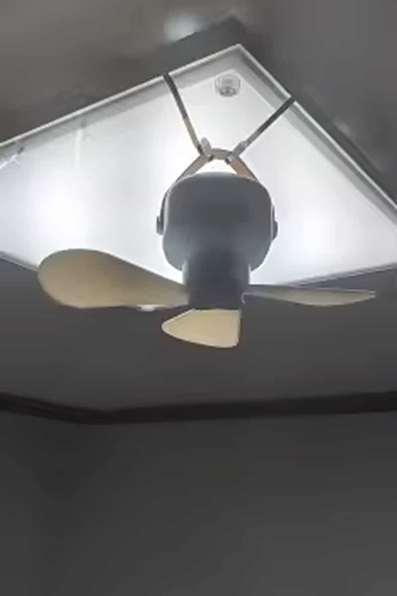 The sturdy hook safely supports the fan's lightweight design when properly secured. It's designed for the fan's weight and tested for reliable overhead hanging on tent poles, branches, and hooks.