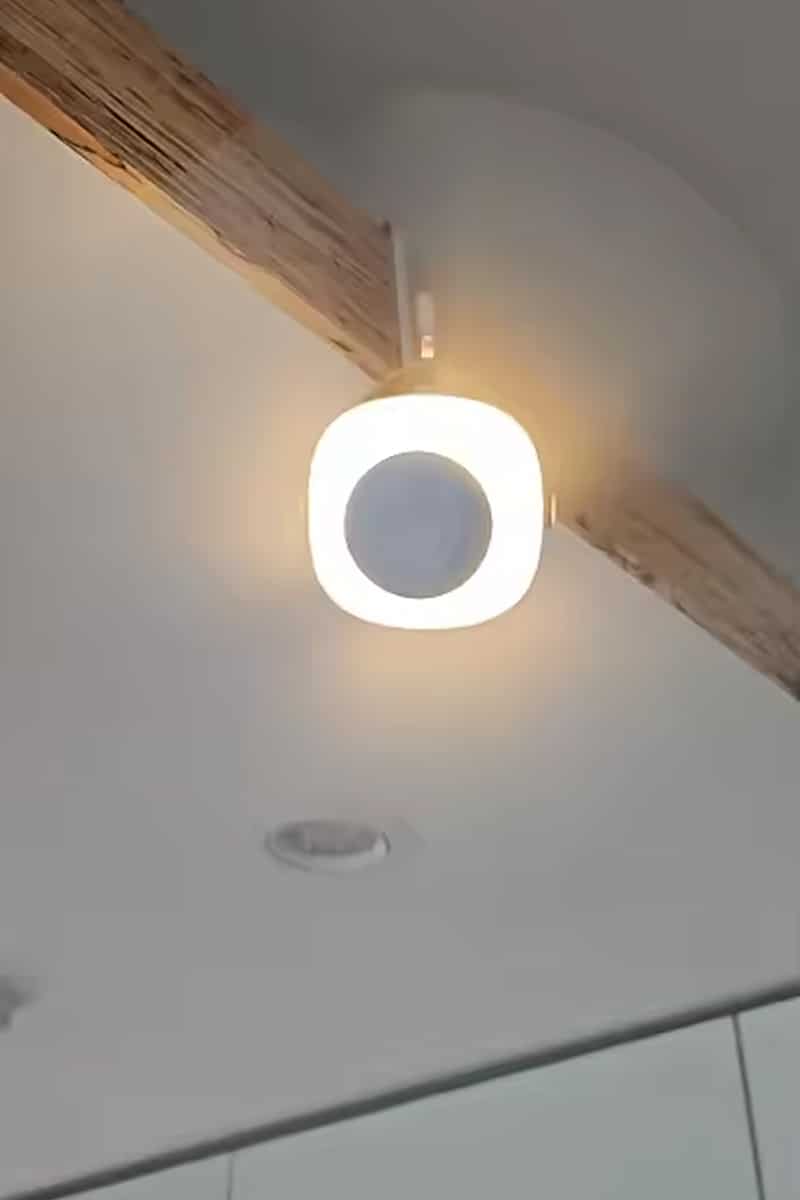 The integrated LED light features adjustable brightness levels. Press the light button to cycle through settings, from subtle ambient lighting to bright illumination for nighttime activities and camping.