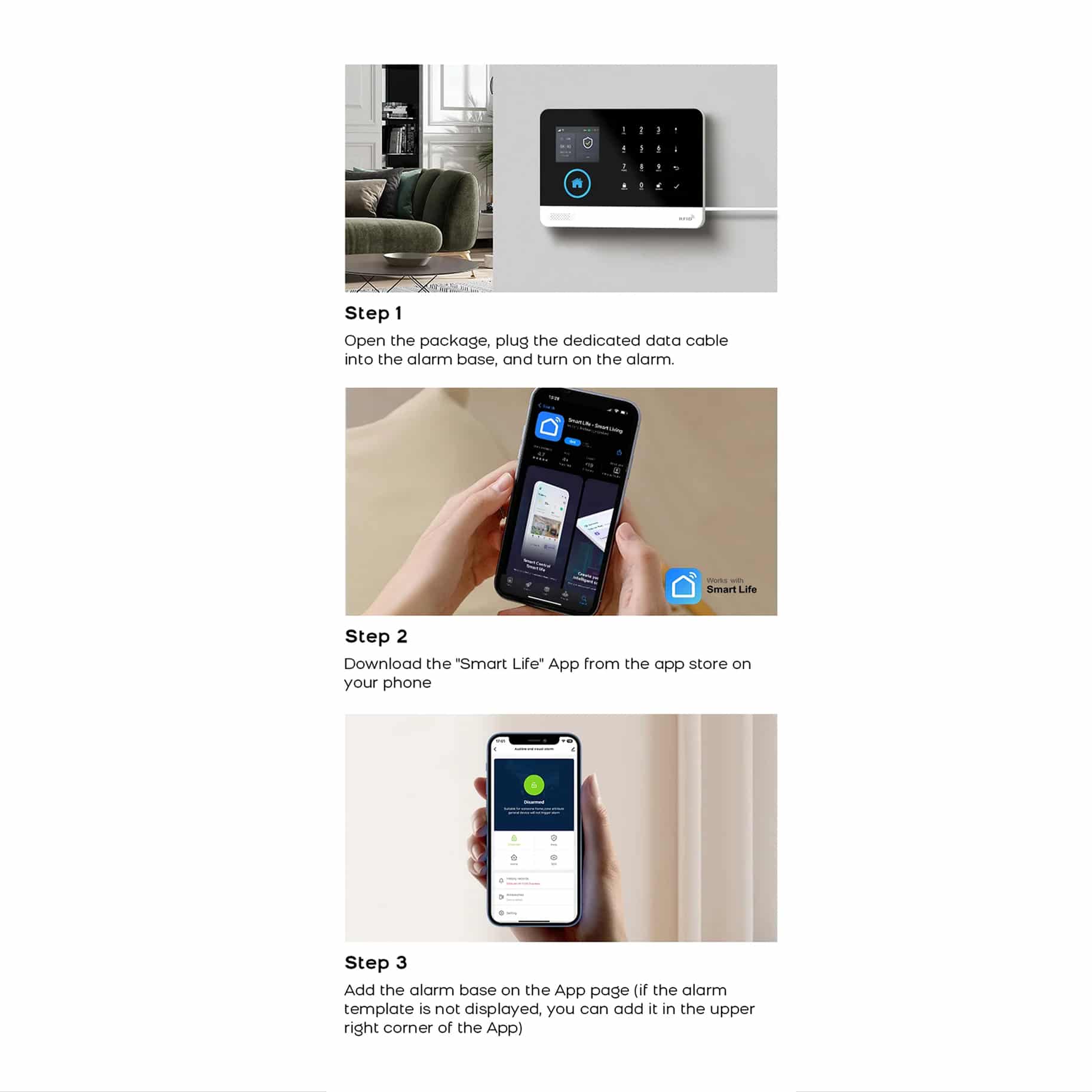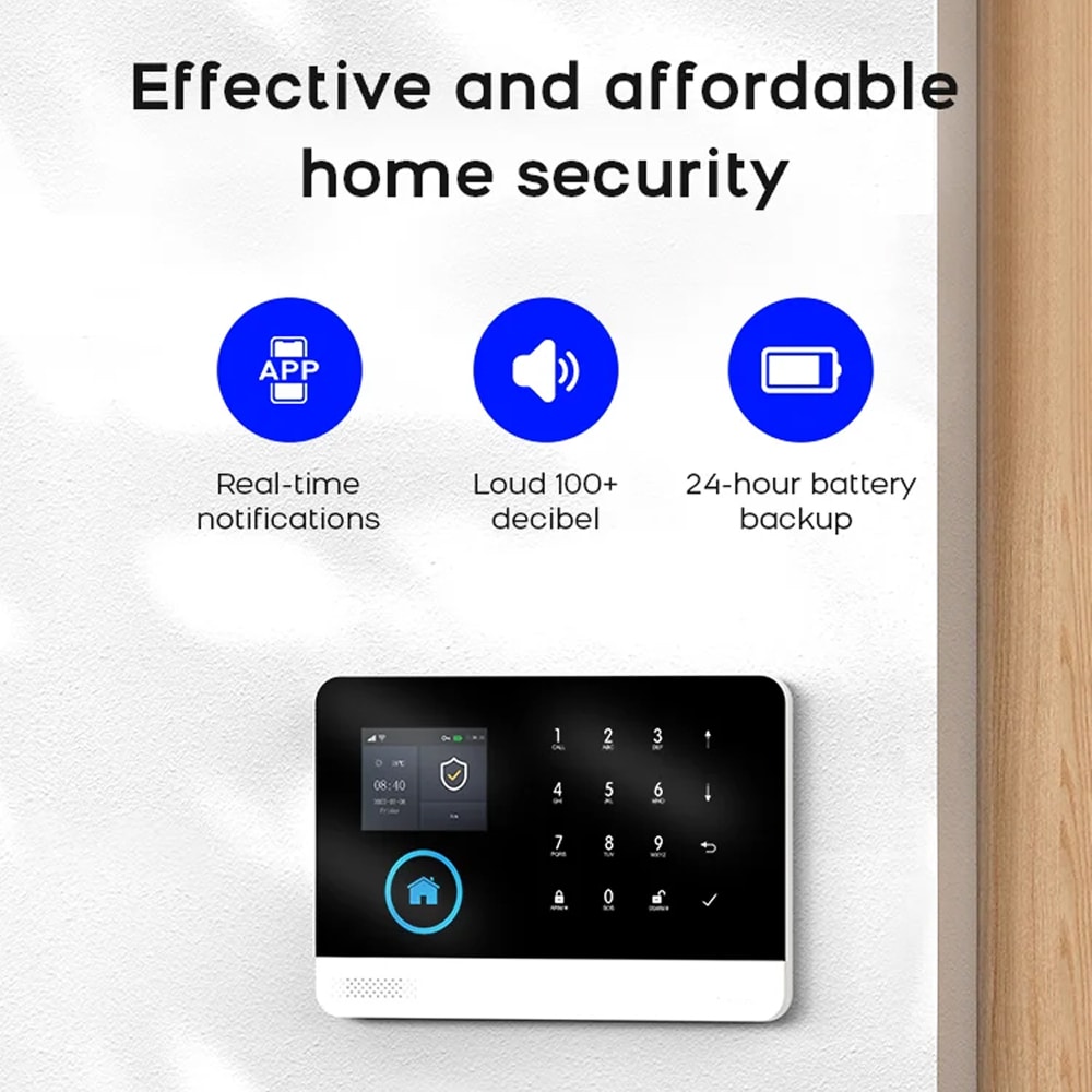 Installation takes about 30-45 minutes. Simply mount the alarm host to your wall using included screws, download the Smart Life APP, and sync your sensors. No wiring or technical expertise required for complete setup.
