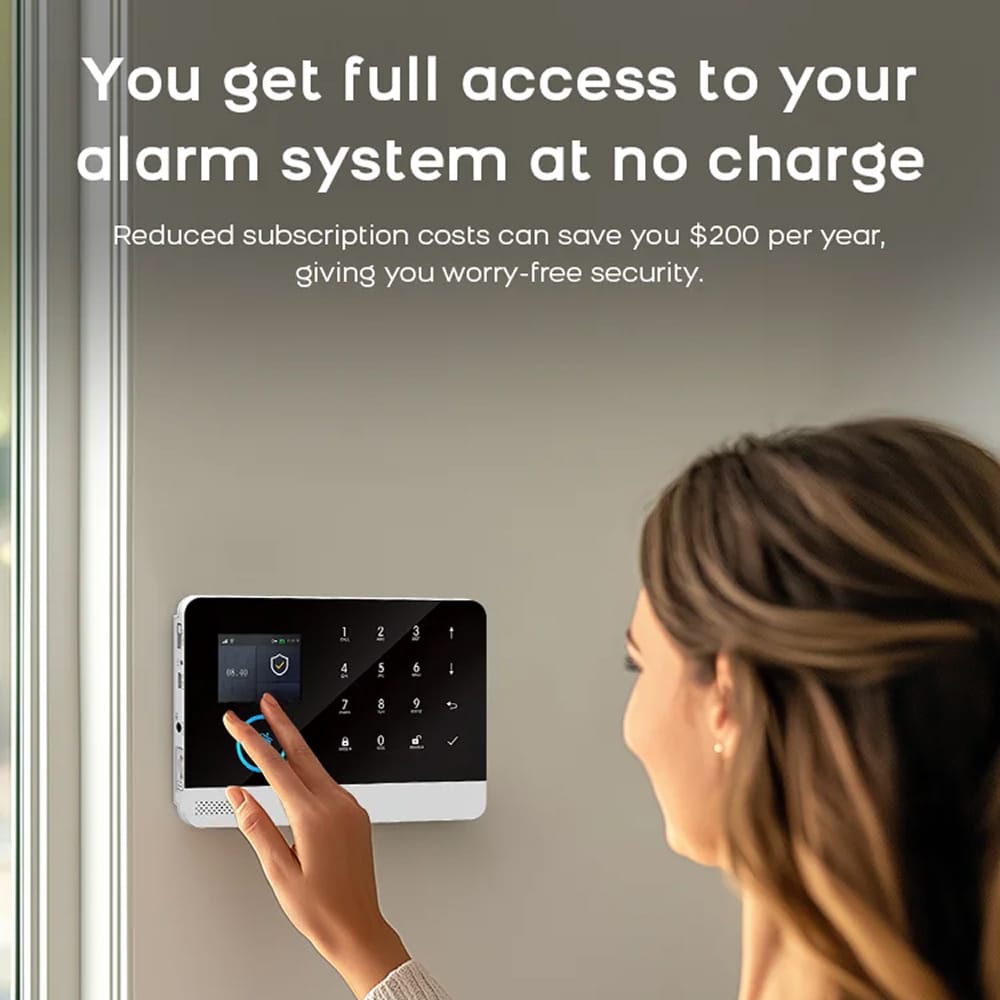 No monthly fees required. You get full access to all features including real-time alerts, alarm history, scheduling, and device sharing at no ongoing cost. This saves you over $200 annually compared to traditional monitored systems.