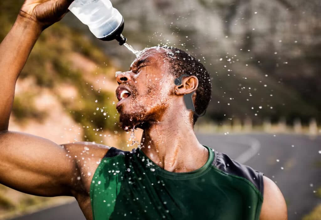 The IPX6 waterproof rating protects against sweat and rain but is not designed for submersion. We recommend using traditional waterproof earbuds specifically designed for swimming activities instead.