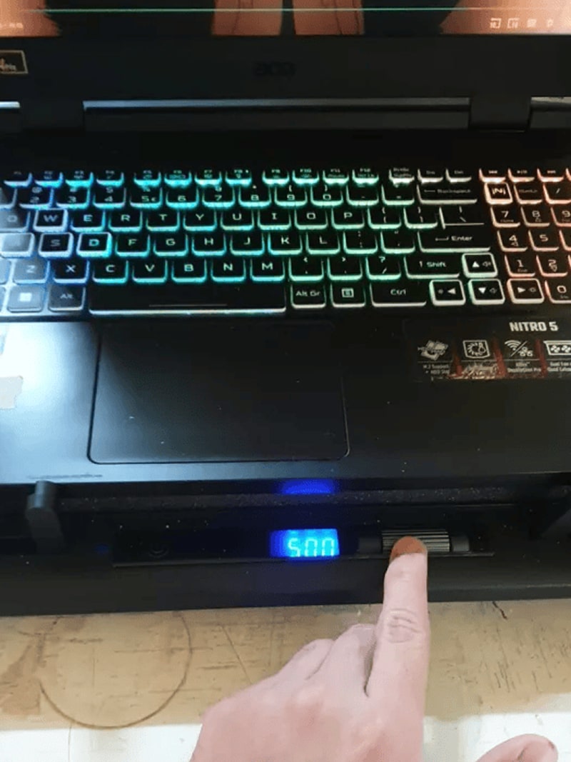 The HeatyAway connects via USB cable to power the fans and RGB lighting, drawing power directly from your laptop or any USB power source without requiring separate electrical outlets.
