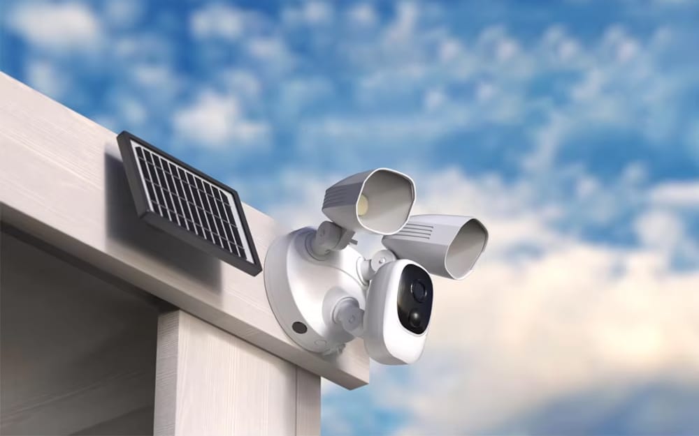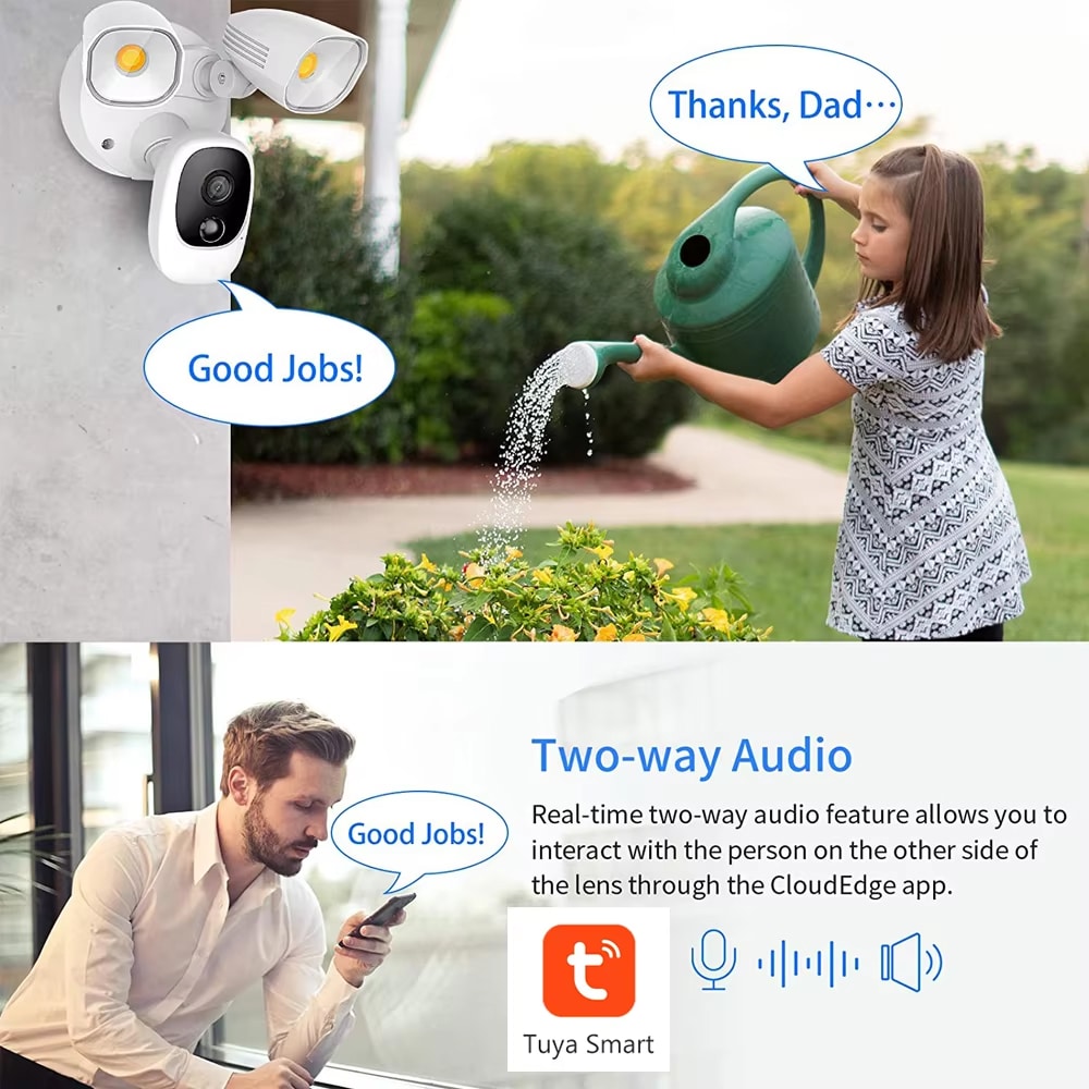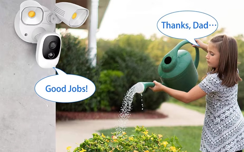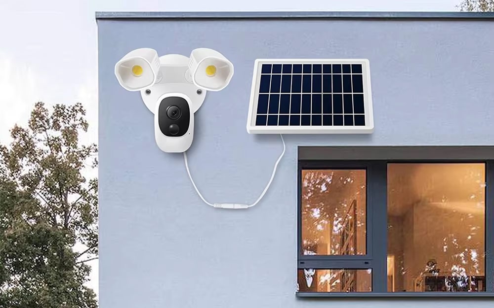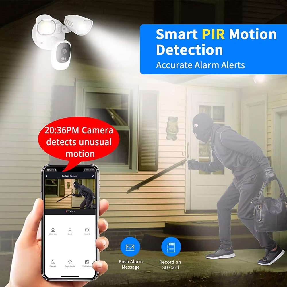 When the HolitCam's motion sensor is triggered at night, its powerful 1000LM LED floodlights automatically turn on. This illuminates the area, allowing the camera to capture full-color, high-definition video instead of standard black and white footage.