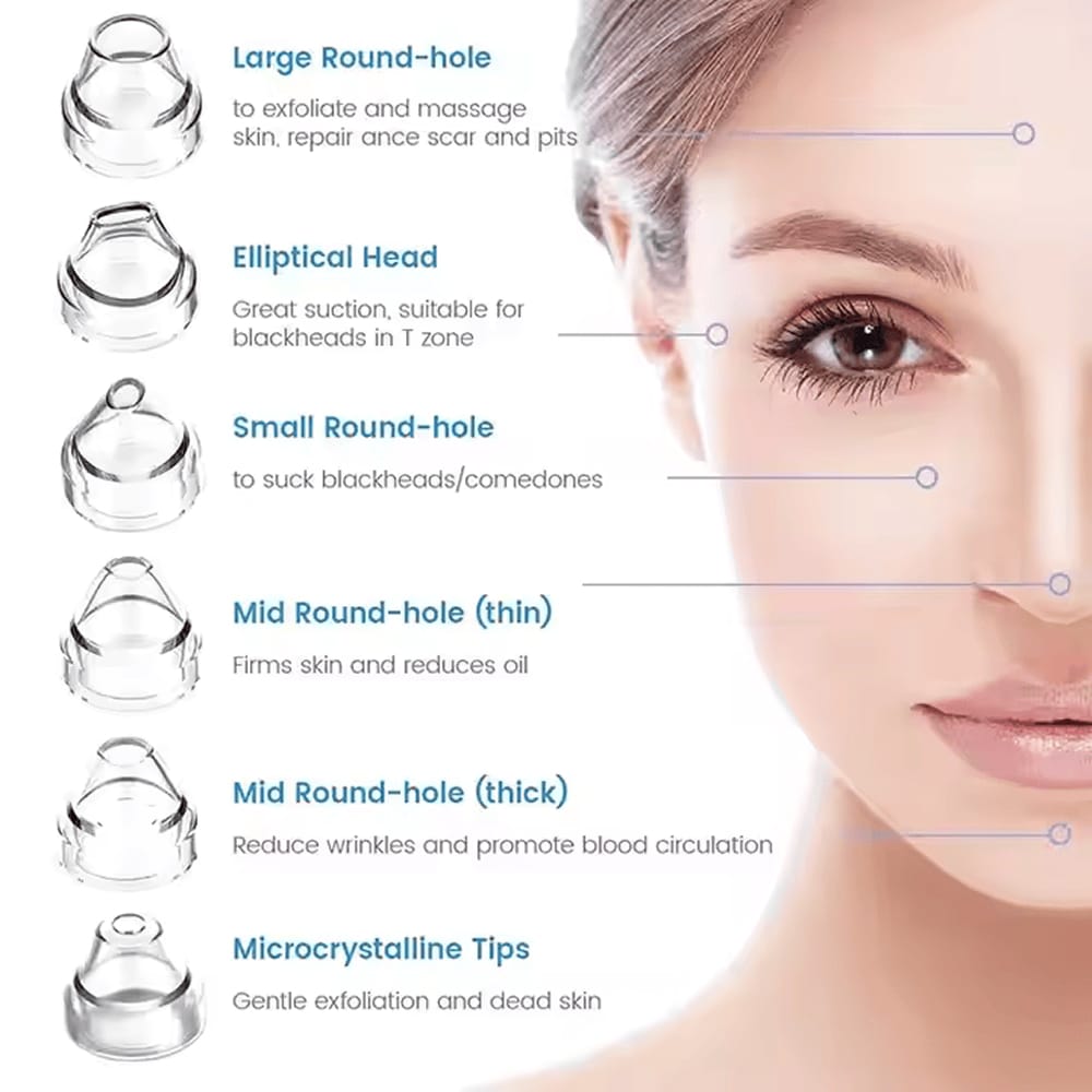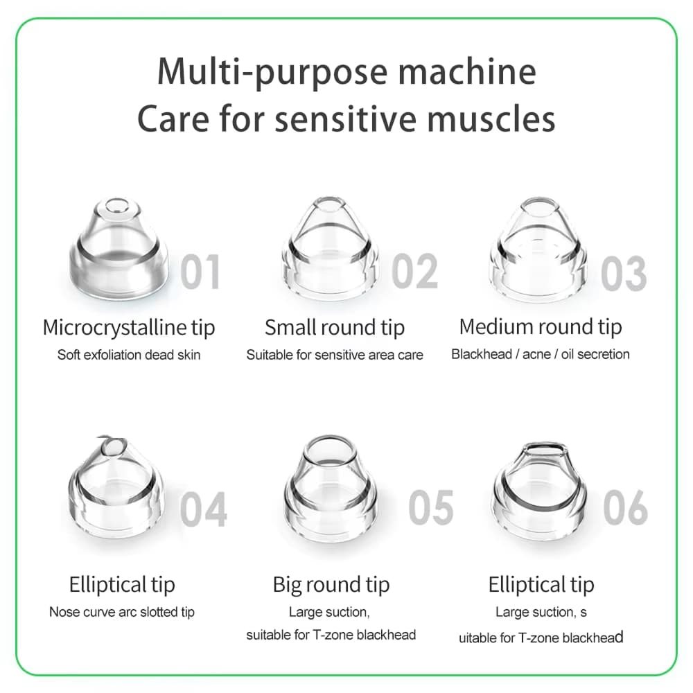 Each tip targets specific concerns: large pores, fine lines, blackheads, whiteheads, exfoliation, and sensitive areas. This variety ensures comprehensive treatment for every skincare need and concern.