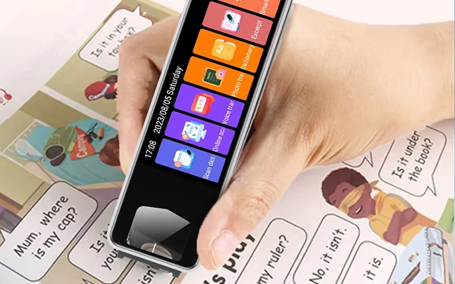 LexiPeni Translator Pen instantly scans and translates printed text in real-time. Simply glide the pen over any book, document, or sign, and watch translations appear on the vibrant 3.71-inch HD screen within seconds.