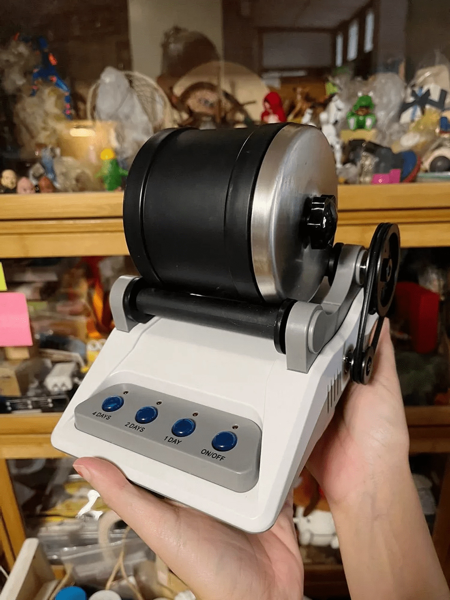 The LustGemix operates at approximately 45 decibels, quieter than most conversation levels. Advanced sound insulation and the leak-proof barrel design significantly reduce operational noise compared to traditional rock tumblers.