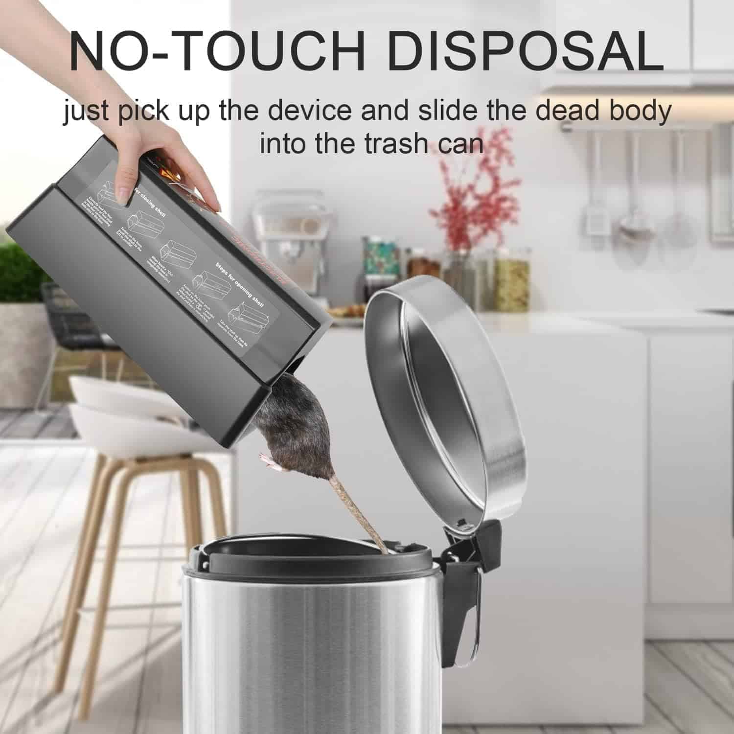 No-touch disposal system keeps hands clean during use. MiceGrab v2 Rodent Traps allows water cleaning of metal plates after automatic power-off, removing odors and residue effortlessly for hygienic, stress-free maintenance.
