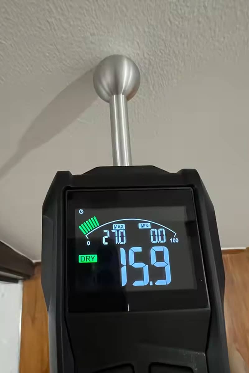 No, the non-destructive spherical probe technology measures moisture without penetrating surfaces. Your walls, floors, and ceilings remain completely unmarked and undamaged during testing.