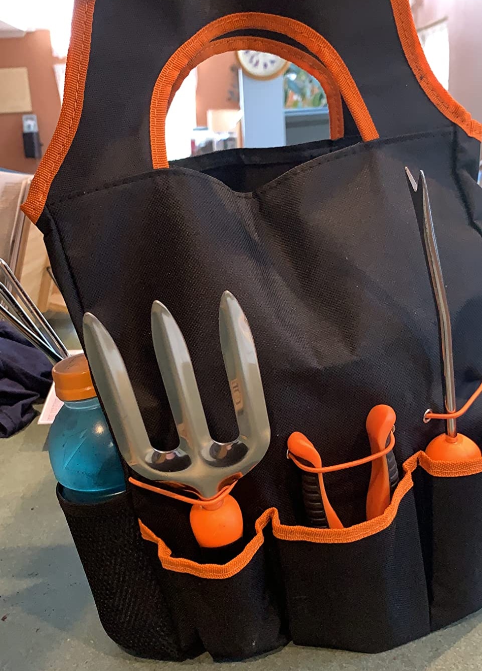 The sturdy 600D Oxford cloth tote keeps your PlantoTix Garden Tool Set organized and protected. Deep pockets with elastic cords prevent tool loss while the tear-resistant material withstands outdoor conditions and cleans easily.
