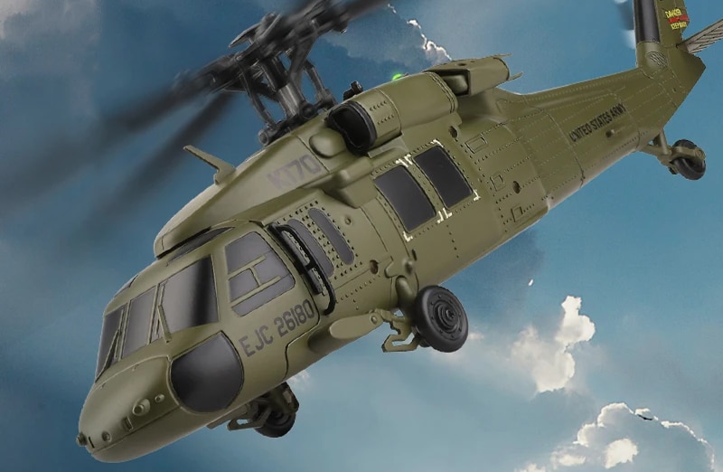 The RotoMavi RC Helicopter delivers authentic Black Hawk UH-60L performance with advanced brushless motor technology and intelligent 6-axis stabilization. Perfect for beginners and enthusiasts seeking precision control and realistic flight dynamics in a compact, durable design.
