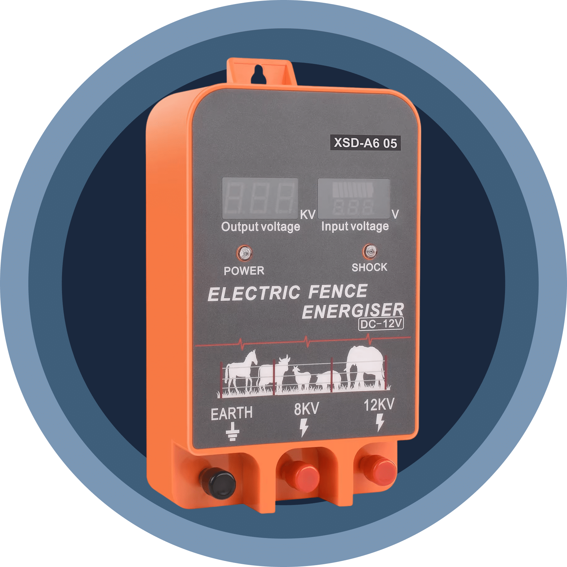 The LCD display shows real-time voltage levels and performance data, allowing you to identify issues immediately and maintain optimal fence operation without constant physical inspections.