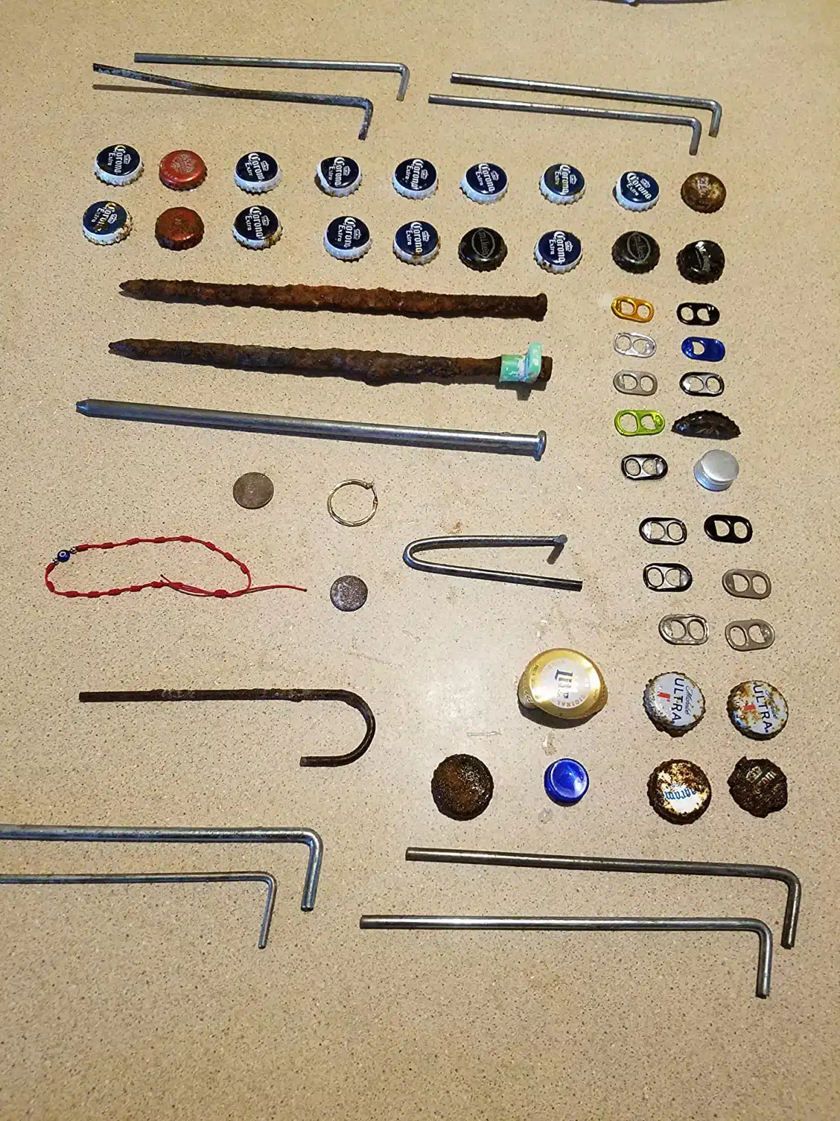 The TreaXpert Metal Detector accurately identifies various metals including gold, silver, copper, iron, and aluminum using advanced discrimination technology that distinguishes between different metal types with remarkable precision.