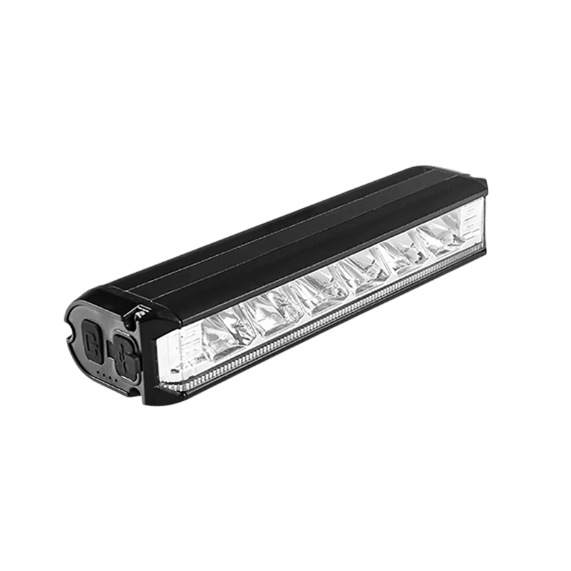 The VeloBeami includes an intelligent 4-level power display showing 25%, 50%, 75%, and 100% charge levels, so you always know exactly how much battery remains before your ride.