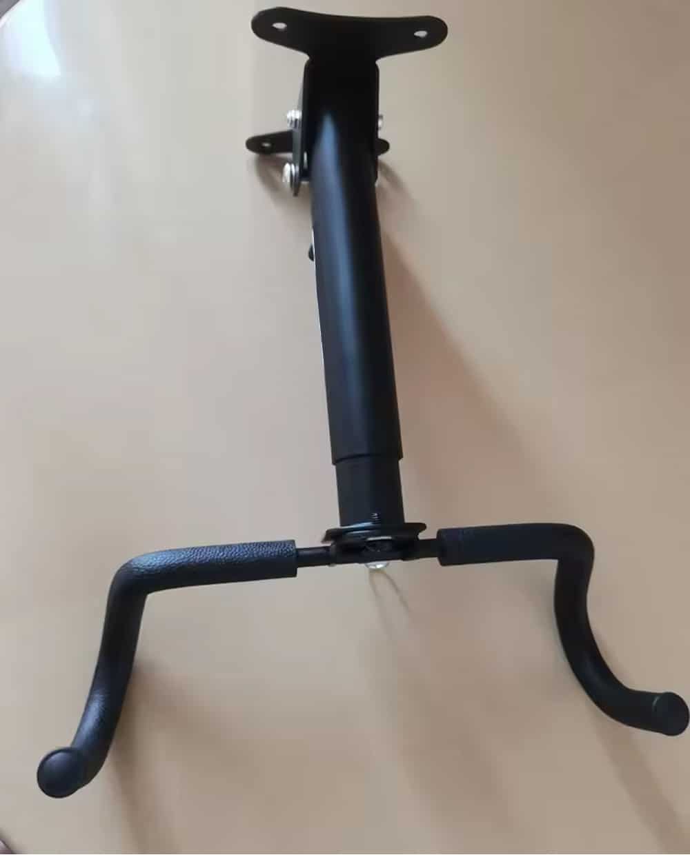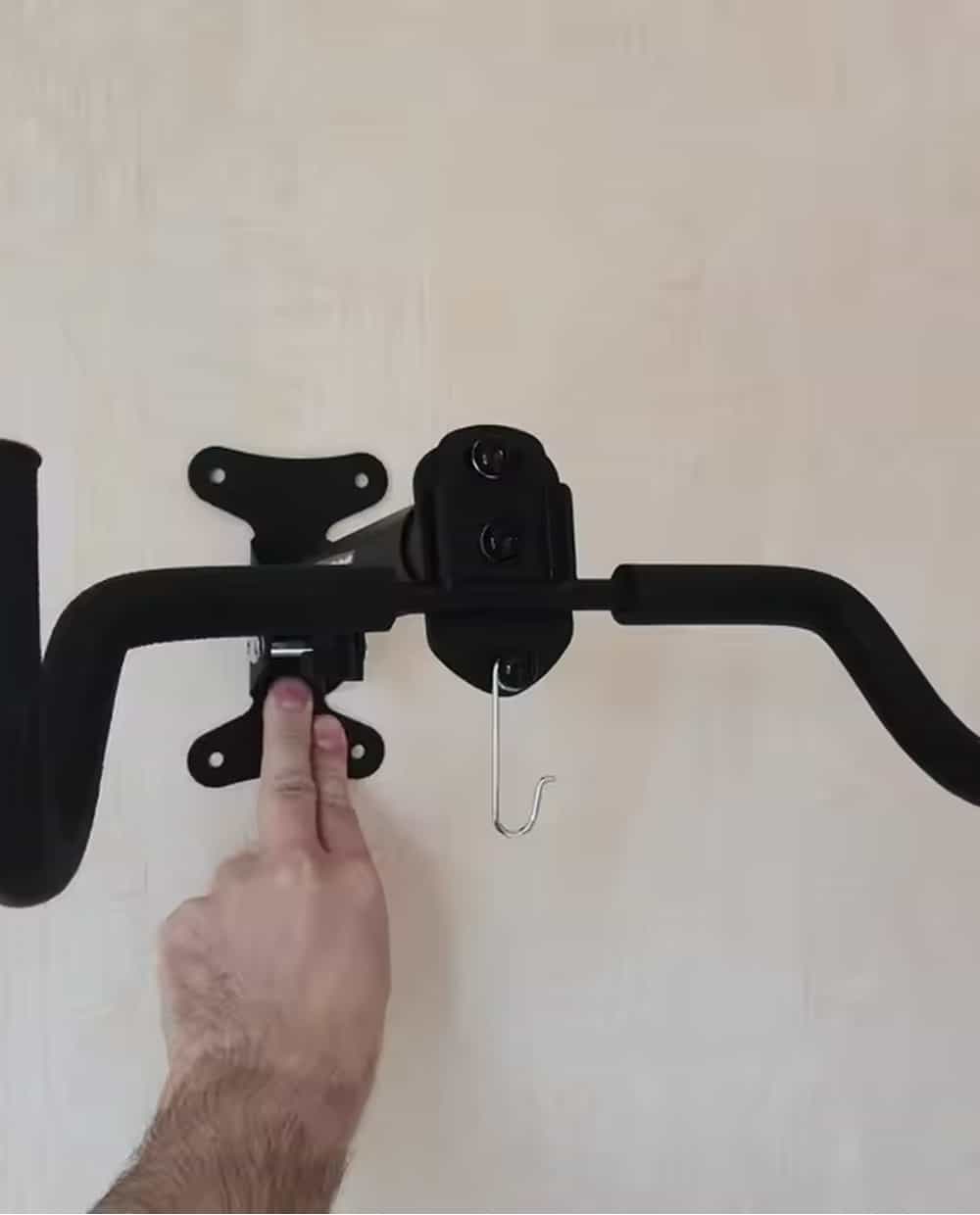 The hook angle adjusts tool-free by hand. Simply loosen the adjustment mechanism, tilt to your preferred angle for your bike's geometry, and tighten securely before hanging your bicycle.