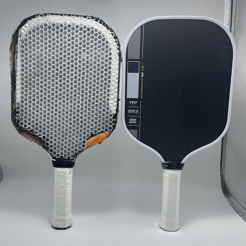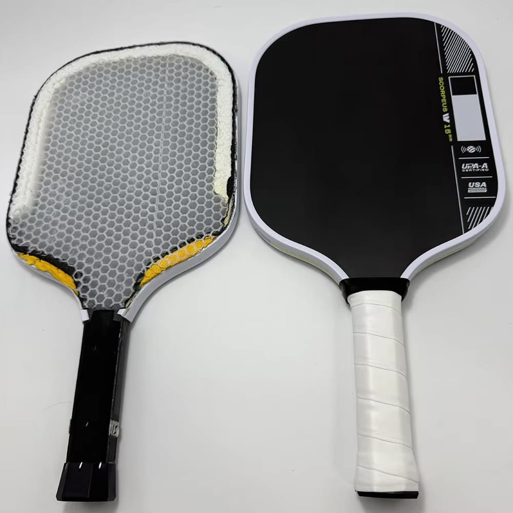The paddle weighs approximately 7.8 to 8.2 ounces, which is the optimal range for competitive play. This weight provides excellent maneuverability while maintaining enough mass for powerful shots and stable control.