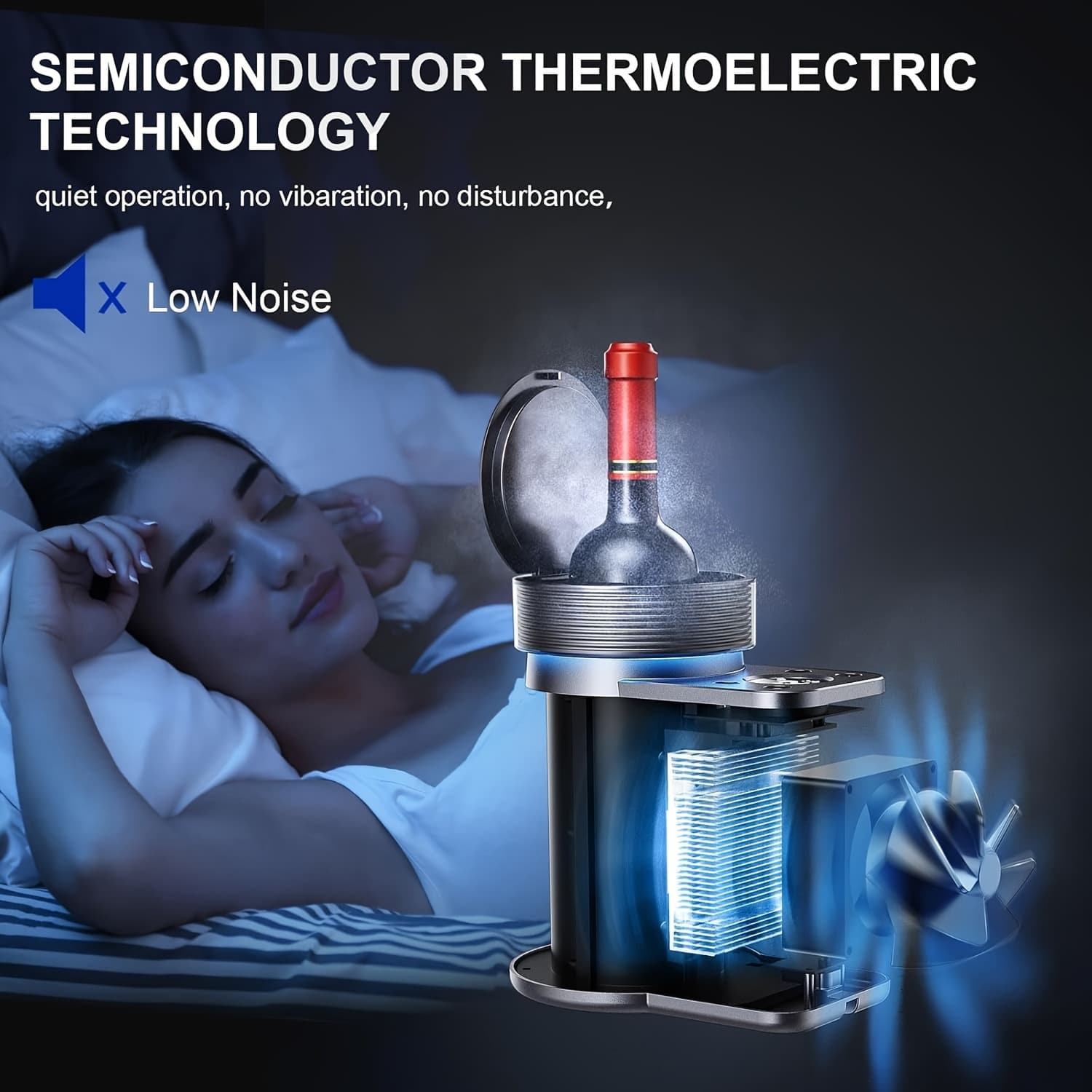 The WineKoldy operates efficiently using minimal electricity, comparable to a small light bulb. Its semiconductor technology consumes significantly less power than traditional compressor-based wine coolers.