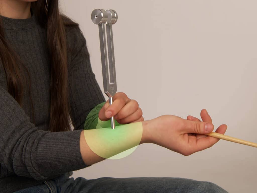Simply activate the fork with the mallet and place it on your discomfort area. Sound frequencies penetrate deeply to relax muscles, soothe joints, and restore energy balance safely.
